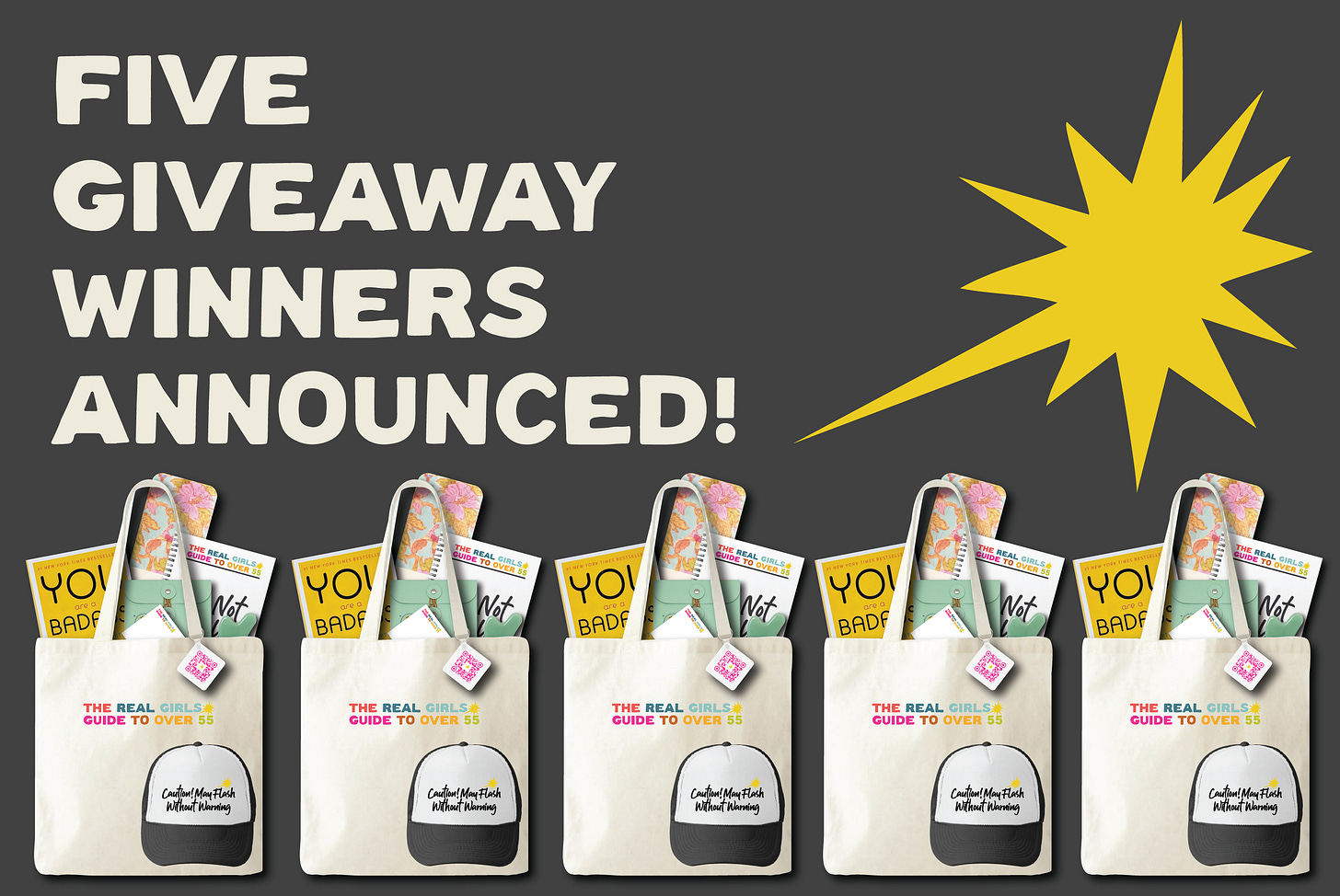 And to the whole crew - you’re why we do this!! We’re so glad you’re part of The Real Girls Guide to Over 55 family. Stick around, because the fun’s just getting started: more unfiltered truths, more midlife mayhem, and yes…another fun giveaway is already in the works!!